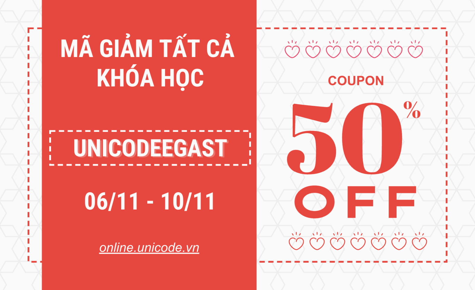 Nhập mã coupon UNICODEEGAST để giảm thêm 50% nữa